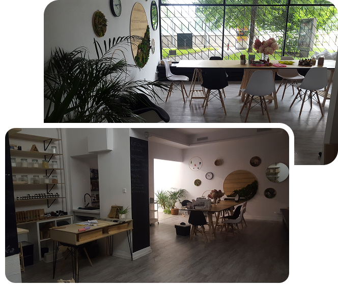 Łączna powierzchnia sali to aż 70m2, gdzie pomieścimy 40-45 osób na warsztatach i imprezach standing party lub do 30 osób przy możliwości zapewnienia dla każdego miejsca siedzącego.